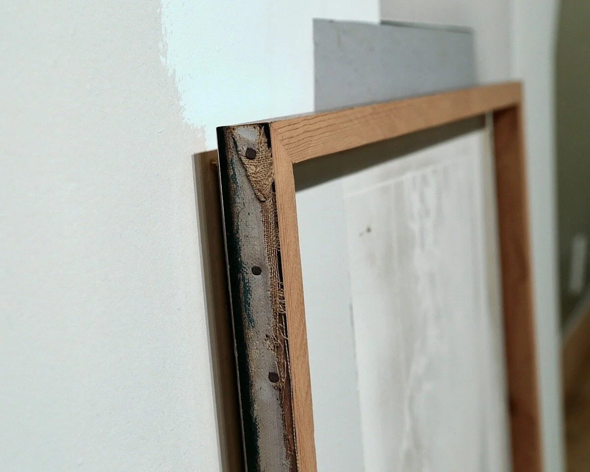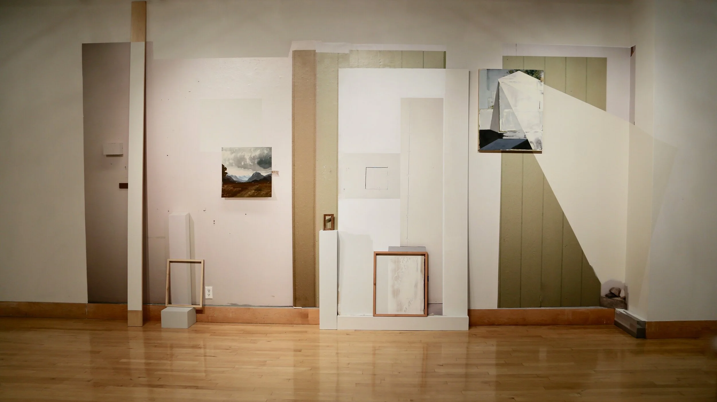 Installation detail. Pigment print on wood, drywall, paint.